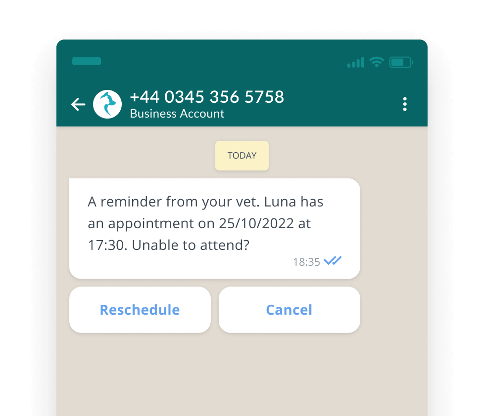 Rather than a simple message (which is still impactful), you can add rich features such as interactive buttons. Let’s say you were sending an appointment reminder. A button for your recipient to reschedule via your online booking system or a button to call the practice makes it quick and easy to move the appointment (if they need to). Plus, it’s more engaging!