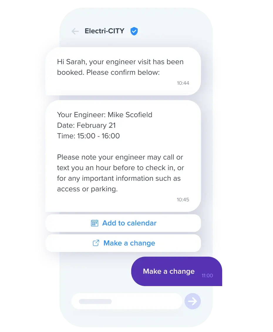 Esendex helps utility, energy and power providers to streamline communications with appointment reminders, account updates, disruption notices and seamless customer support. Our SMS solutions enable you to meet customer demand, build trust and reduce the risk of accounts falling into arrears.