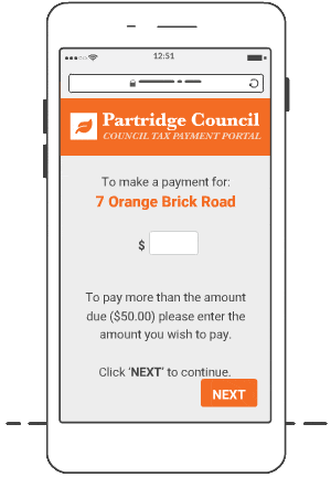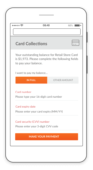 We’ll send a text to your phone with a link to the Mobile Payment where you can make a payment. Don’t worry – you don’t have to enter your real bank details.