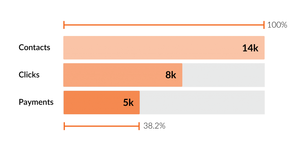 We took a sample group of 14,000 customers and found that just over 5,000 (38.2%) of them went on to make a payment.