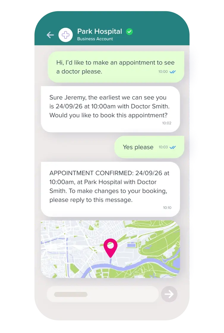Save your customers from long email chains and phone calls to book appointments or check order information. Send personalised confirmations and reminders to reduce no-shows and improve engagement.